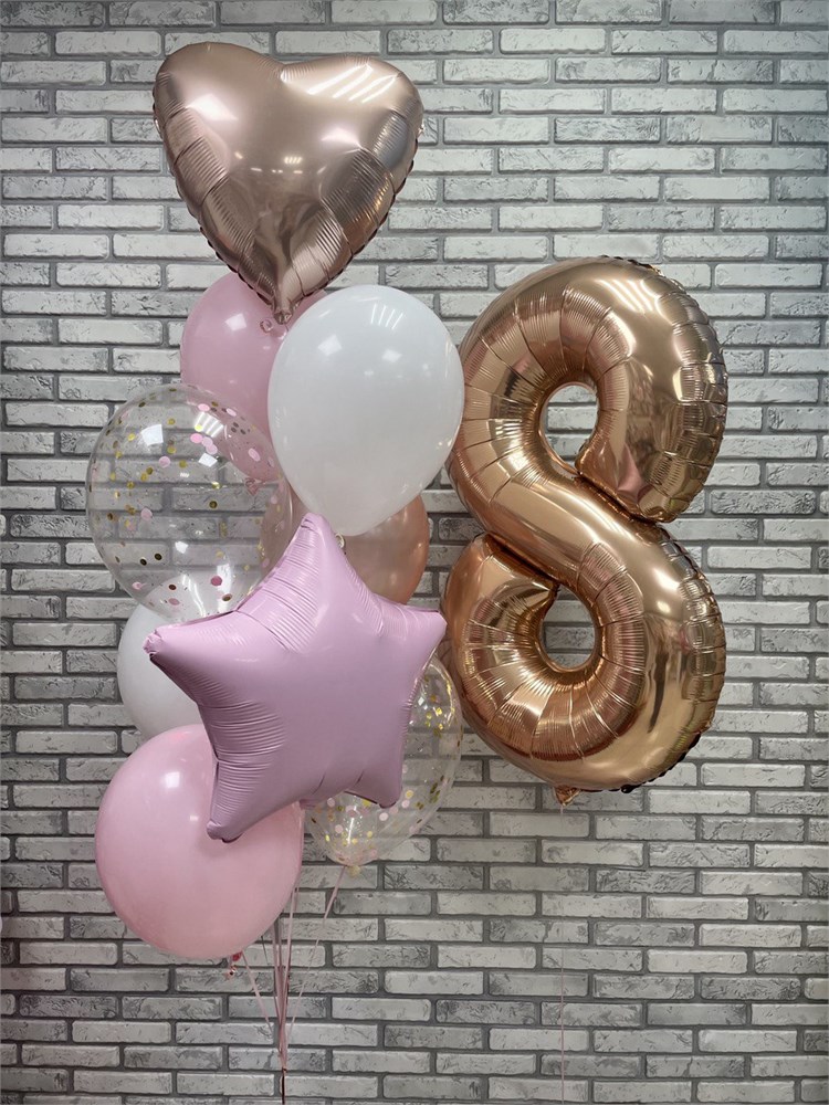 Фонтан из воздушных шариков с цифрой "Розовое золото"